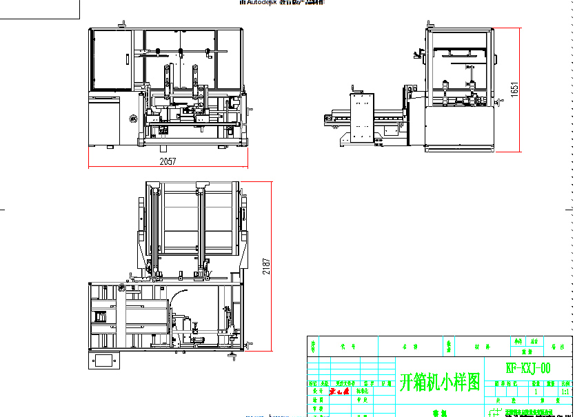 自動開箱機是整套工程設(shè)備中的前端,是設(shè)備自動將折疊成紙板箱板打開,并完成下部分膠帶粘合后成型一個紙箱。目前傳統(tǒng)的使用方式為人工對紙板進行開箱封底,使之成為一個空紙箱,人工開箱速度較慢,且工作強度較大,因此使用開箱機,不僅能夠提高整體生產(chǎn)效率,同時也是降低了用工數(shù)量。(詳見設(shè)備小樣圖五)。